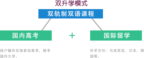 联外公学双轨制课程,由国内教育专家根据现阶段中学生学习方式及思维模式特别设置的双语融合课程。升学模式采取国内高考+国际留学的双通道模式。学生未来在升学途径的选择上可以多一份保障。国际留学可选的国家也相对比较灵活。学校提供了海外100多所大学的资源。